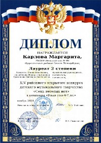 XIV районного открытого конкурса детского музыкального творчества «Семь веселых нот» в номинации «Вокал соло 6-7 лет»