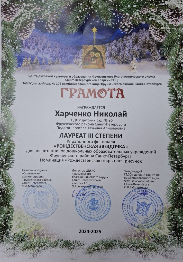 IV районного фестиваля «Рождественская звездочка» для воспитанников дошкольных образовательных учреждений Фрунзенского района Санкт-Петербурга