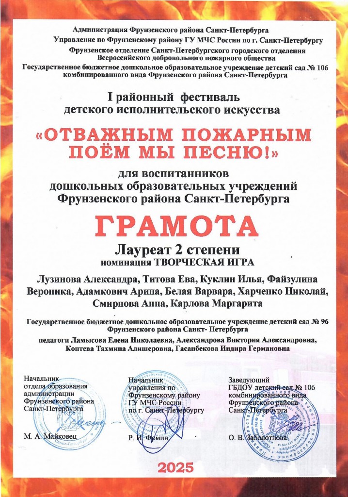 «Отважным пожарным поем мы песню!» для воспитанников дошкольных образовательных учреждений Фрунзенского района Санкт-Петербурга,